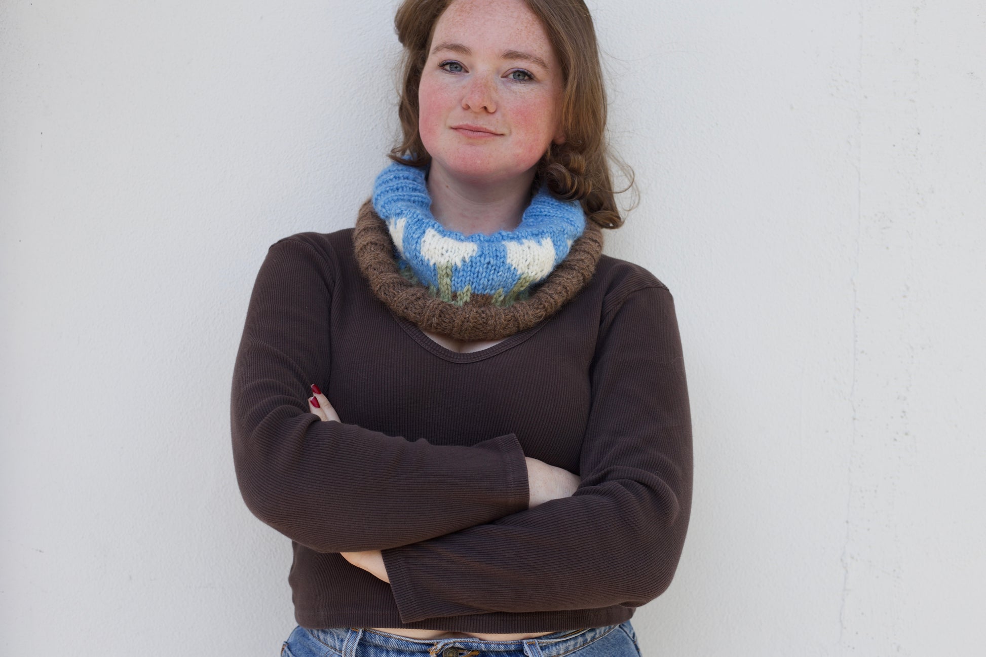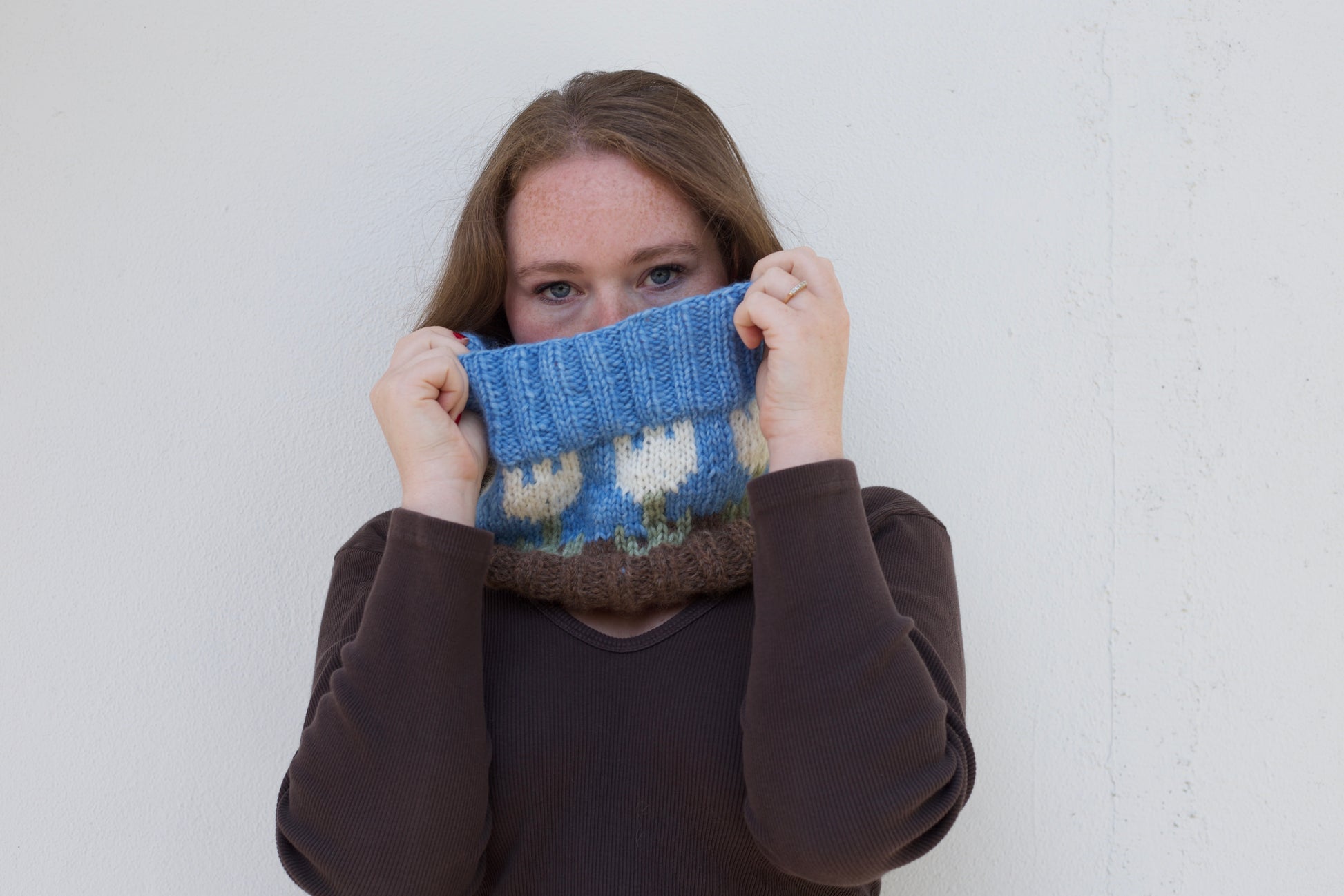 Cowl is meant to be worn loosely around the neck. For a tighter fit, fold in the top ribbing.